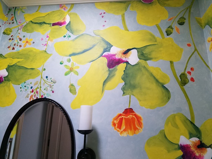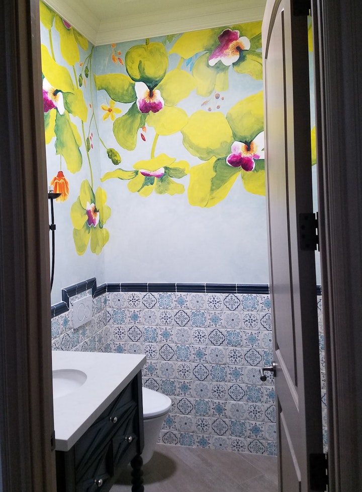 Another half-bath in the same house as the "Paisley gone wild" half-bath. A color- and pattern-lover, this client.