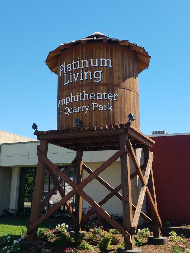 The naming rights for this Rocklin, CA park were bought by a senior housing services company, Platinum Living. This is not a real water tower; basically it's a billboard for the park.